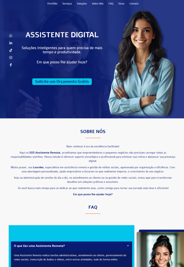 Aqui na SOS Assistente Remota, acreditamos que empreendedores e pequenos negócios não precisam carregar todas as responsabilidades sozinhos. Nosso objetivo é, oferecer suporte estratégico e profissional para otimizar sua rotina e alavancar sua presença digital.